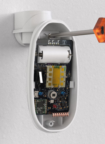 Aprire il sensore rimuovendo l’apposita vite inferiore e traslando la scocca anteriore verso l’alto.